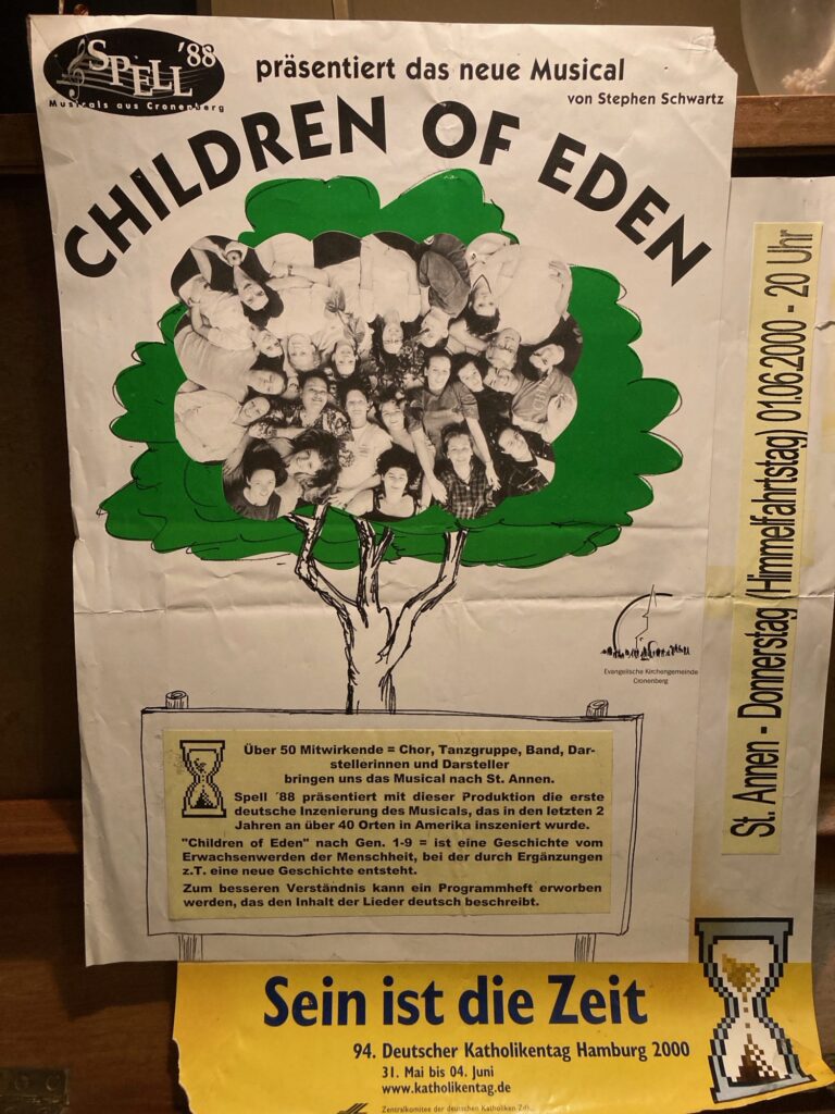 Manchmal öffnet sich im Rückblick eine Tür zu einer Zeit, in der alles möglich schien. Für mich war das 1999 – das Jahr, in dem ich mit meinem Chor SPELL88 das Musical Children of Eden von Stephen Schwartz auf die Bühne brachte. (Details auf www.spell88.de)
