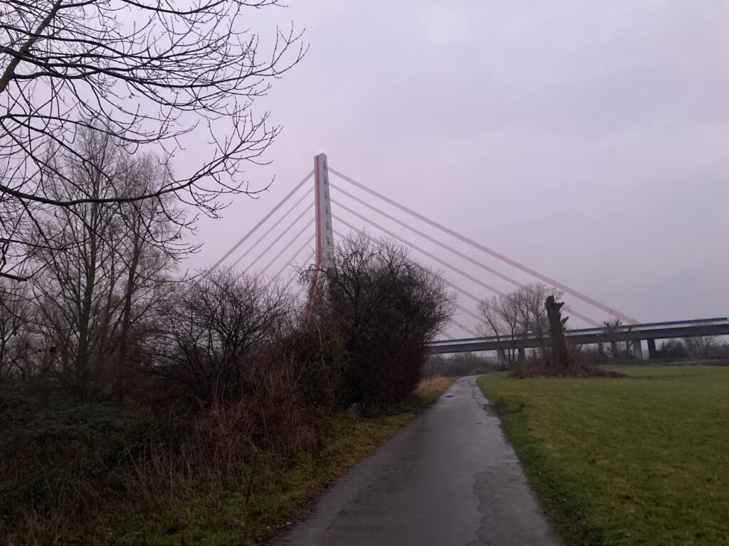 Über die Fleher Brücke querten wir den Rhein und fuhren anschließend rechts auf die Rheinwiesen.
